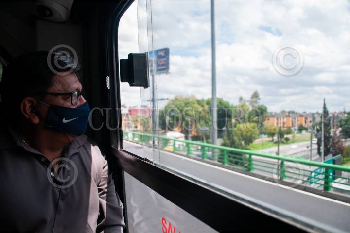 Un usuario del Metrobús se asoma por la ventana al pasar por una de las estaciones elevadas con las que cuenta la ampliación de este transporte.