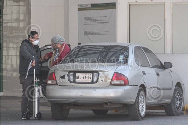 Ingreso de hombre con tanque de oxígeno al área de urgencias por COVID-19.