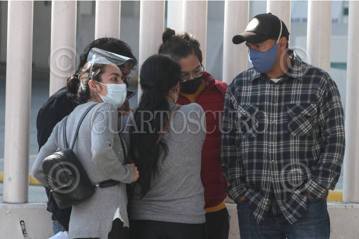 Familia se junta a las afueras del hospital, para escuchar mensaje de familiar internado.