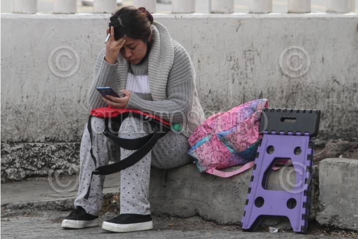 Una mujer espera con cigarro en mano a las afueras del Hospital Regional del IMSS.