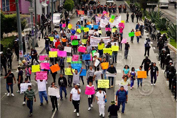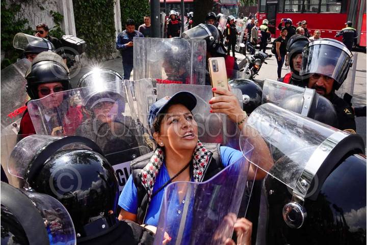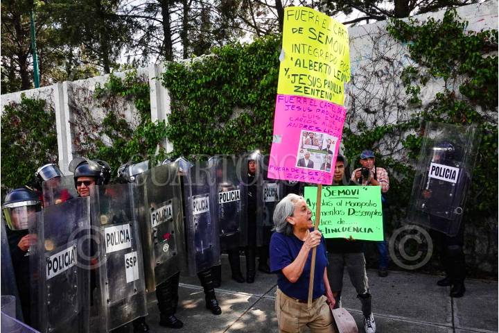 CIUDAD DE MÉXICO, 03OCTUBRE2023.- Transportistas de la Ciudad de México; protestaron esta mañana con un bloqueo en Calzada de la Bombas & Armada de México de la alcaldía Coyoacán. Policías capitalinos encapsularon a los manifestantes, quienes exigen audiencia con autoridades de la Secretaria de movilidad. FOTO: ROGELIO MORALES/CUARTOSCURO.COM