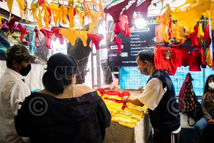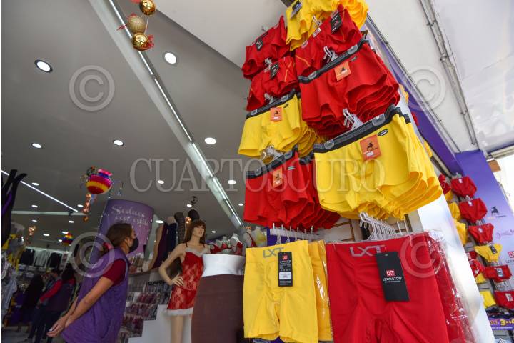 La ropa interior de color rojo y amarillo son parte de los rituales para recibir el Año Nuevo, pedir abundancia en amor y dinero, negocia de la capital mexiquense ofrecen estas prenderas para hombres y mujeres.