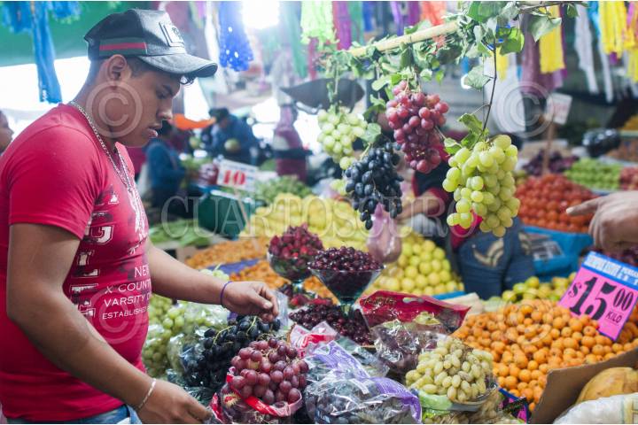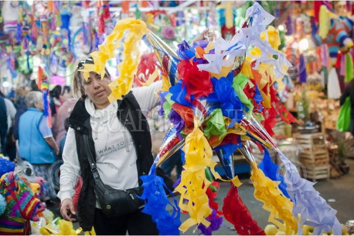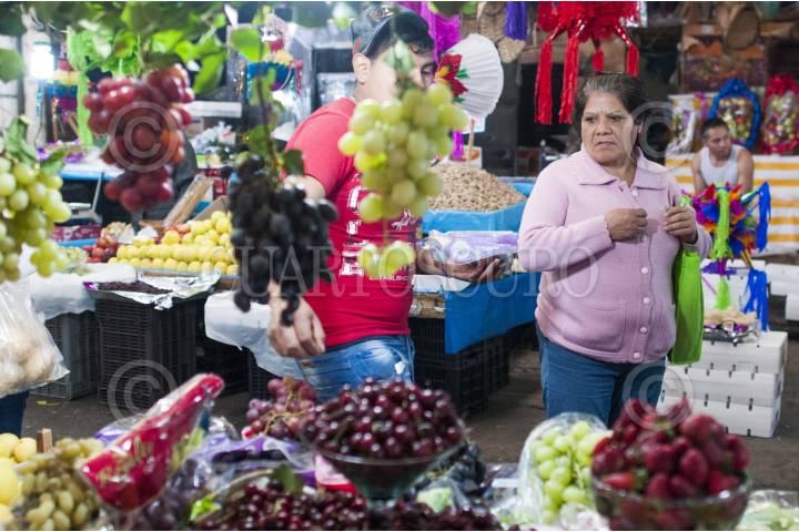 CIUDAD DE MÉXICO, 30DICIEMBRE2016.- Comerciantes del mercado de Jamaica ofrecen todo tipo de productos para fin de año. Uvas, calzones rojos y amarillos, piñatas, sidras y amuletos para la buena suerte son los productos más venidos. FOTO: DIEGO SIMÓN SÁNCHEZ /CUARTOSCURO.COM