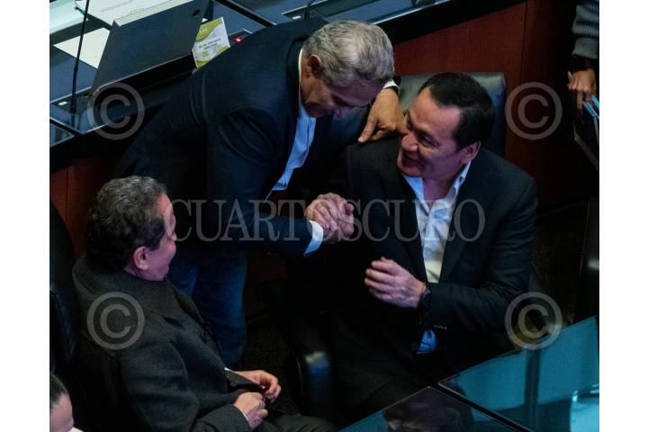 CIUDAD DE MÉXICO, 05DICIEMBRE2023.- El senador independiente, Eruviel Ávila; el perredista Miguel Ángel Mancera y el senador Miguel Ángel Osorio Chong durante la sesión ordinaria de la LXV Legislatura en la Cámara de Senadores. FOTO: GALO CAÑAS/CUARTOSCURO.COM