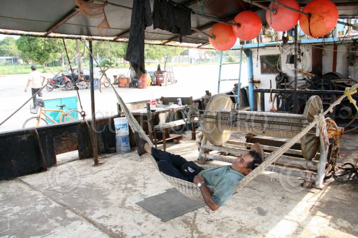 CENTLA, TABASCO, 08ENERO2009.- Algunos tripulantes de embarcaciones pesqueras camaroneras pasan la mayor parte del día en sus barcos. Muchos de estos pescadores tienen poca esperanza de volver al mar y realizar su labor en alta mar en donde pasan hasta 15 días, lo anterior debido al alto costo del diesel. FOTO: MARCO POLO GUZMÁN HERNÁNDEZ/CUARTOSCURO.COM