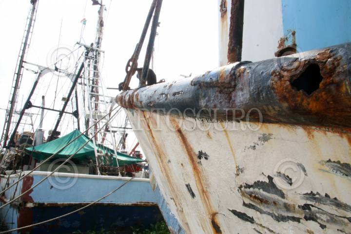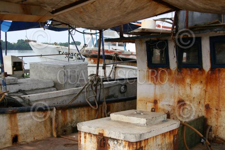CENTLA, TABASCO, 08ENERO2009.- Ante la crisis económica y pesquera que atraviesa el país, la mayoría de las embarcaciones camaroneras permanecen varadas y ancladas en el puerto de Frontera. Muchos de estos barcos carecen de mantenimiento y se les nota la oxidación. FOTO: MARCO POLO GUZMÁN HERNÁNDEZ/CUARTOSCURO.COM
