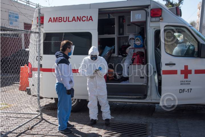 Una ambulancia con un paciente es rechazada en la zona Triage Covid-19 del Centro Médico Nacional Siglo XXI, debido a la saturación en camas de atención.