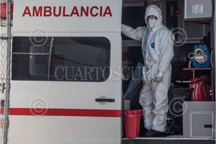 Paramédicos esperaron más de cuatro horas para que su paciente trasladado pueda ser aceptado en el Hospital General La Villa por síntomas covid-19.