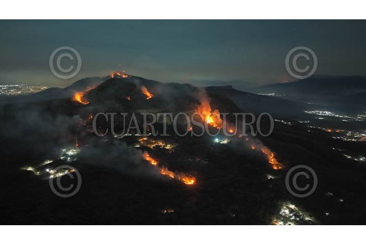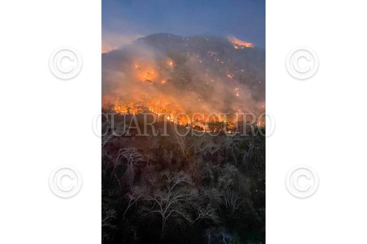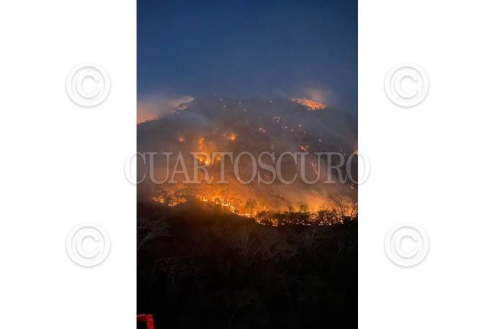 TUXTLA GUTIERREZ, CHIAPAS, 26MARZO2024.- Debido a las altas temperaturas y la falta de lluvias en la región, el cerro Mactumatza, en uno de los principales pulmones de la capital chiapaneca inició un incendio desde la tarde de este martes y las autoridades de Protección Civil iniciaron acciones para combatirlo. Por el momento la zona se encuentra cerrada al paso ya que el incendio no ha podido controlarse. FOTO: CUARTOSCURO.COM