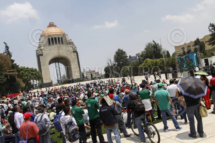 MÉXICO, D.F., 13JUNIO2014.- Cientos de personas se congregaron en la explanada del Monumento a la Revolución para observar el partido México vs Camerún del mundial Brasil 2014. FOTO: RODOLFO ANGULO /CUARTOSCURO.COM