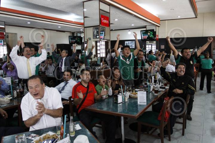MÉXICO, D.F., 13JUNIO2014.- En bares y cantinas de la ciudad, aficionados observaron el partido México vs Camerún del mundial Brasil 2014. FOTO: RODOLFO ANGULO /CUARTOSCURO.COM