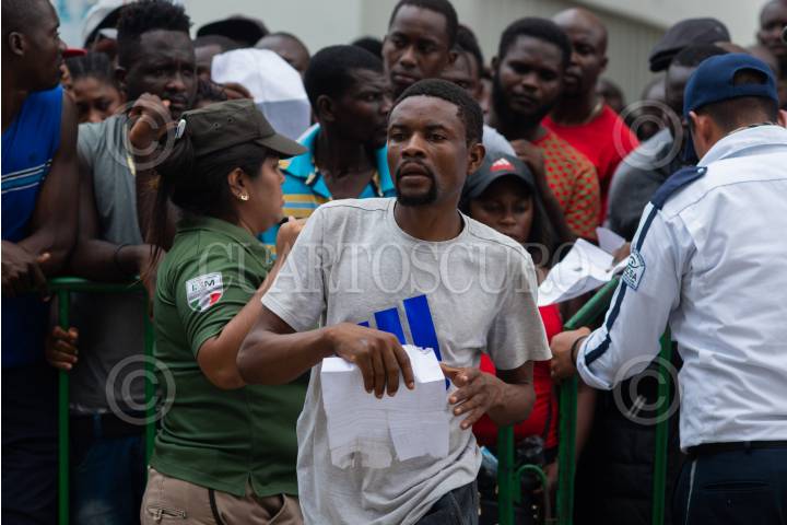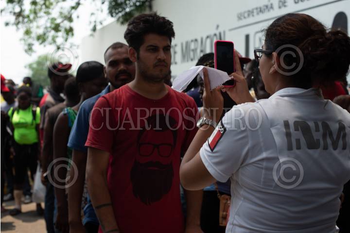 TAPACHULA, CHIAPAS, 30ABRIL2019.- Continua el registro de los migrantes provenientes de Africa, India y Haití que llegaron el día de ayer a la Estación Migratoria Siglo XXI. Después de varias horas de espera los migrantes recibieron una ficha que les permitirá en los siguientes días iniciar sus tramites migratorios para poder cruzar libremente por México. FOTO: ISABEL MATEOS /CUARTOSCURO.COM