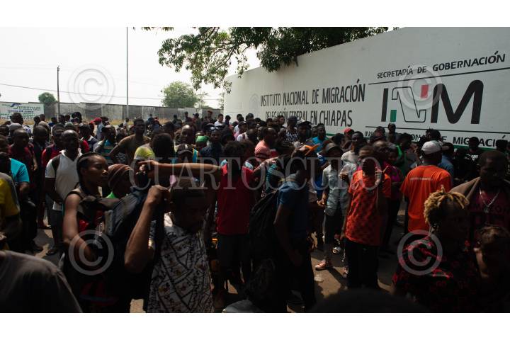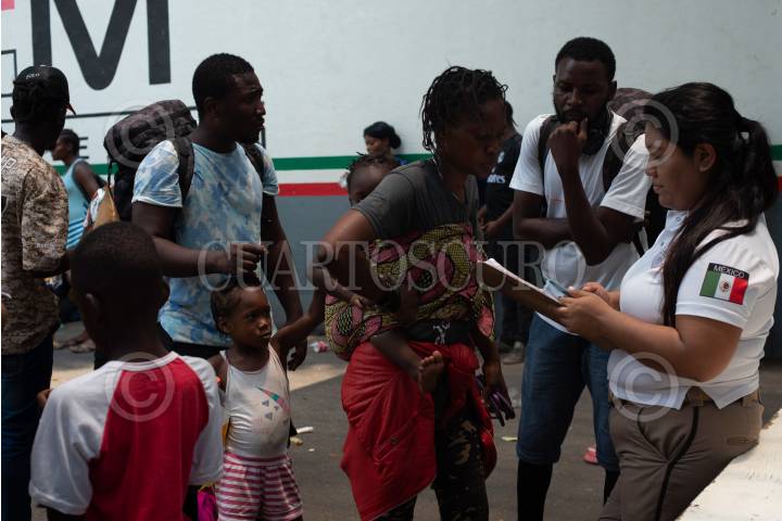TAPACHULA, CHIAPAS, 29ABRIL2019.- Un nuevo grupo de al menos 400 migrantes provenientes del Congo, Camerún, costa de Marfil, India y Haití arribo esta mañana a la Estación Migratoria Siglo XXI en busca de iniciar sus tramites para poder continuar con su camino al norte del país. FOTO: ISABEL MATEOS /CUARTOSCURO.COM