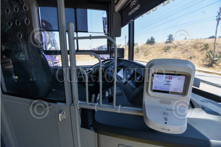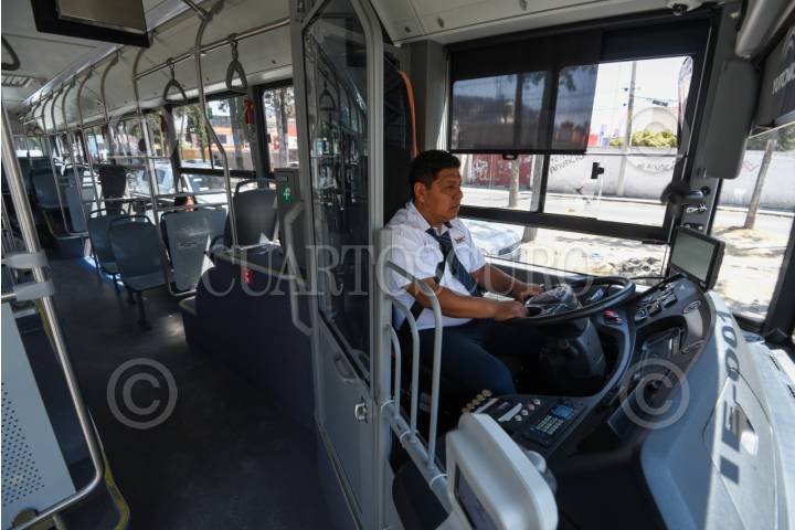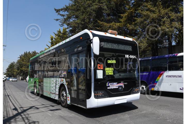 TOLUCA, ESTADO DE MÉXICO, 15MARZO2024.- La empresa Servicio Inter Metropolitano de Transporte puso en marcha un autobús eléctrico en el Valle de Toluca, se encuentran haciendo pruebas con esta unidad eléctrica amigable con el medio ambiente, cuenta con acceso para personas discapacitadas en la parte media del autobús, y está cubriendo la ruta Circuito, que va de Zamarrero en el municipio de Zinacantepec, Ciudad Universitaria, Paseo Matlazincas, Alfredo del Mazo y Paseo Tollocan. La unidad fue traída desde China y entre sus beneficios es la reducción de contaminación y ruido. FOTO: CRISANTA ESPINOSA AGUILAR /CUARTOSCURO.COM