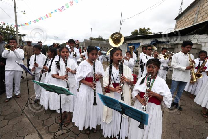 Niñas músicos durante la ceremonia de inauguración del camino rural San Jerónimo Taviche.