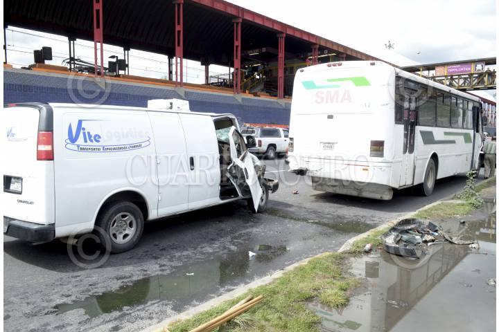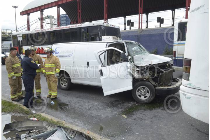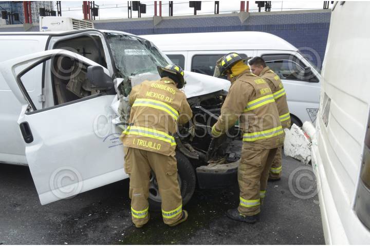 MÉXICO, D.F., 21OCTUBRE2014.- Una camioneta choco contra la parte trasera de un camión de pasajeros en avenida Zaragoza frente a la estación del metro Tepalcates en Iztapalapa donde fue rescatado un joven que quedo prensado entre los fierros de la camioneta, en el incidente resultaron cinco lesionados leves. FOTO: ARMANDO MONROY /CUARTOSCURO.COM