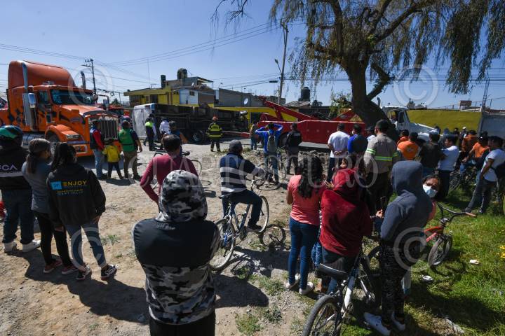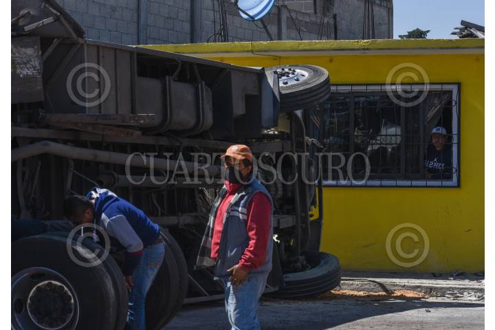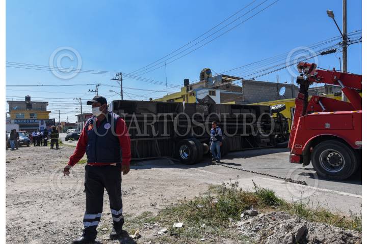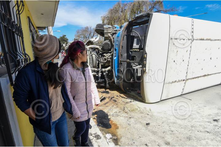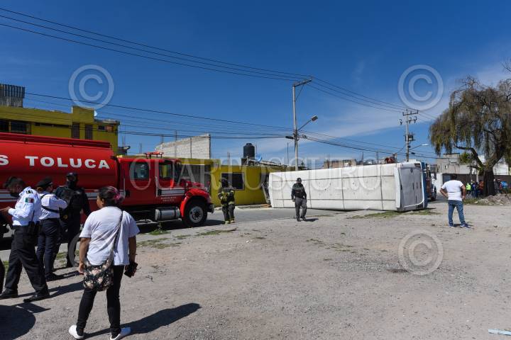 Un camión de pasajero volcó en la Colonia La Crespa en Toluca resultando ocho personas lesionadas, bomberos y policías municipales de Toluca resguardaron la zona hasta ser retirada la unidad.