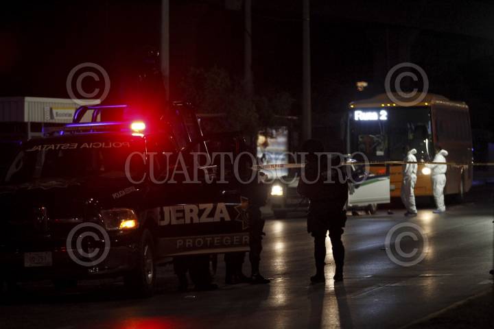 GUADALUPE, NUEVO LEÓN, 12ABRIL2014.- Un pasajero de una ruta urbana murió cuando tres delincuentes que iban a bordo del mismo eran perseguidos por policías desatando una balacera, además hay un oficial herido. Los delincuentes se dieron a la fuga. FOTO: GABRIELA PÉREZ MONTIEL / CUARTOSCURO.COM