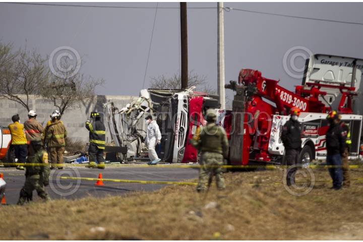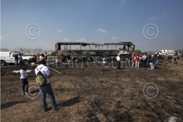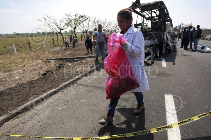 CIUDAD ISLA, VERACRUZ, 13ABRIL2014.- Un trágico accidente en el kilómetro 134+950 de la Autopista Cosamaloapan-Acayucan entre un autobús de turistas y un tráiler dejó como saldo preliminar 36 personas muertas y cuatro lesionados. FOTO: FÉLIX MÁRQUEZ /CUARTOSCURO.COM