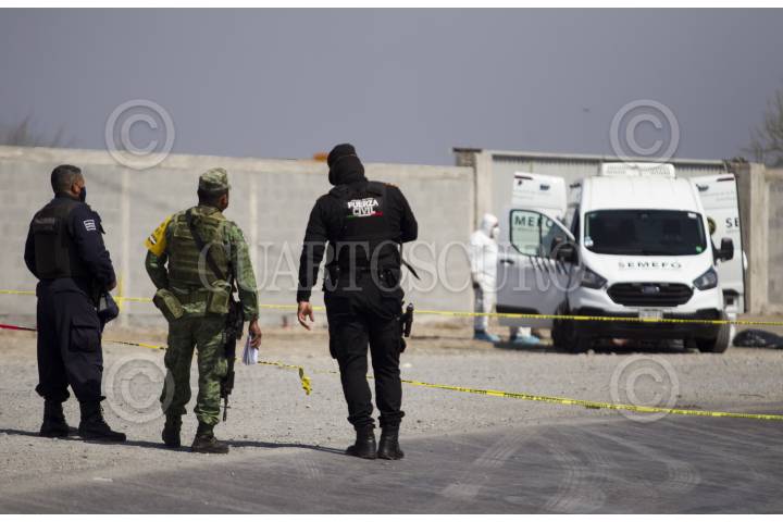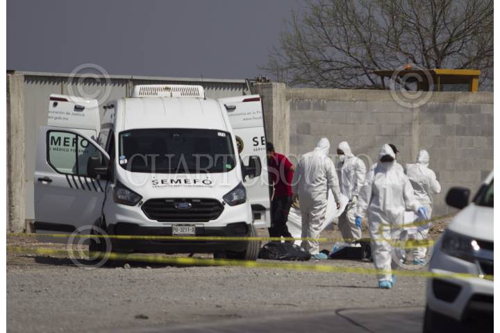 Personal Forense rescata los cuerpos del camión y son trasladados a los camiones de la SEMEFO para ser llevados al Hospital Universitario.