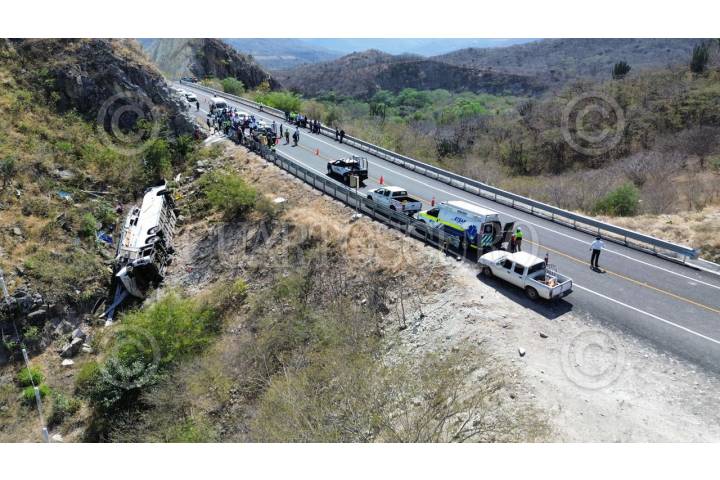 Un camión de pasajeros cayó a un barranco de 50 metros en el Libramiento Norte de Tepic con saldo de 20 personas fallecidas.