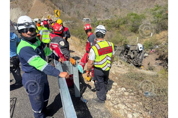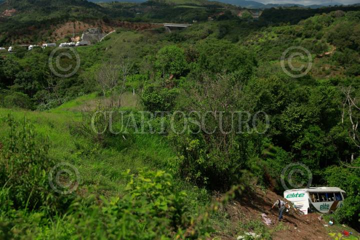 SANTO DOMINGO NARRO, OAXACA, 11MARZO2025.- El día de ayer un faltan accidente cobro la vida de 18 personas, cuando el camión en el que viajaban se desbarranco en un curva de la carretera Mitla-Tehuantepec, 30 personas más quedaron heridas. Trascendió que los pasajeros de la unidad pertenecían al Frente Único de Comunidades Oaxaqueñas (FUCO) y que venían de regreso del mitin de Claudia Sheinbaum, Presidenta de México, que se realizó en domingo pasado en el Zócalo de la CDMX. FOTO: CORTESIA ESTACION FOTO/CUARTOSCURO.COM