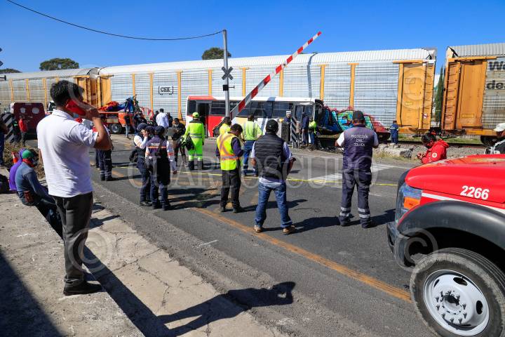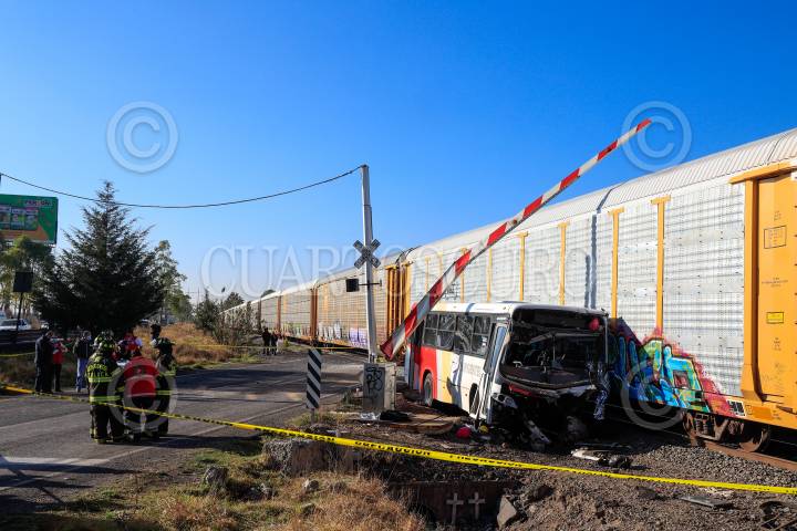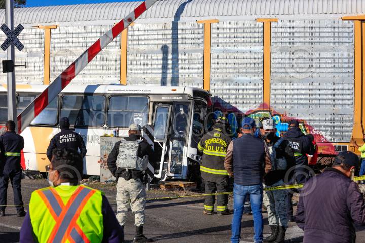 Un camión de pasajeros intentó ganarle el paso al tren en la carretera Toluca-Palmillas dejando un saldo de 1 persona muerta y 18 lesionadas.