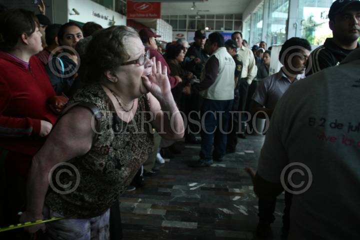 M{EXICO, D.F., 01JULIO2012.- La casilla especial instalada en la Central Camionera del Sur abrió hoira y media tarde, además de que el número de personas que estan formadas rebasa por mucho las 750 boletas asignadas, por lo que la gente molesta pide ejercer su derecho al voto. FOTO: FRANCISCO RODRÍGUEZ /CUARTOSCURO.COM