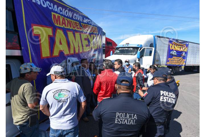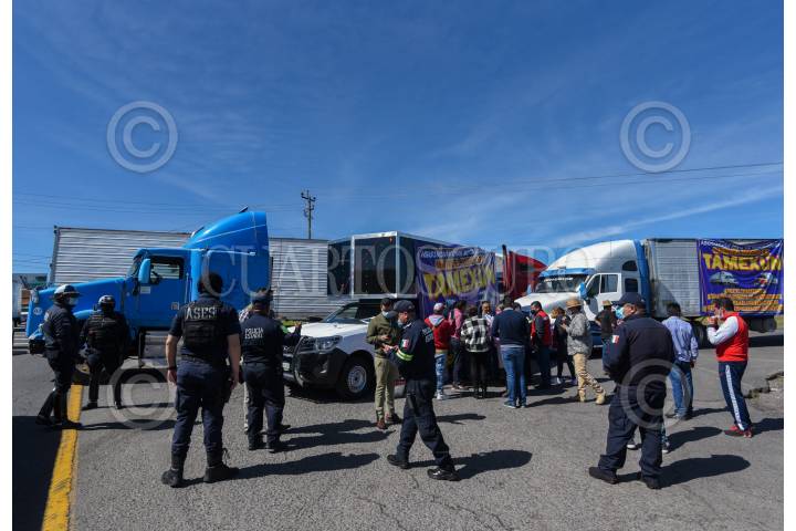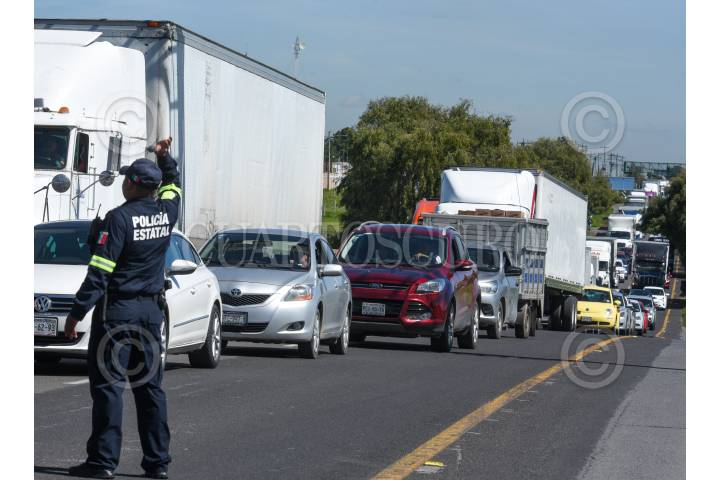 Transportistas bloquearon la carretera Toluca-Atlacomulco en ambos sentidos a la entrada de la capital mexiquense denunciando extorsiones por parte de elementos de la Policía Estatal cuando atraviesan el territorio del Estado de México.
