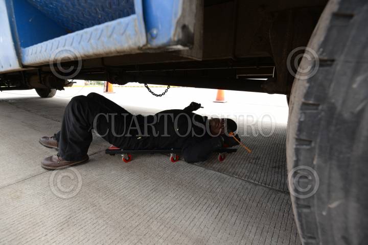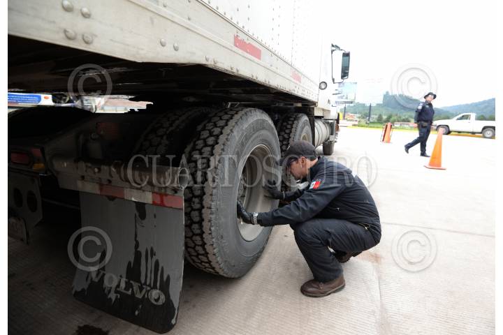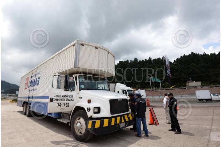 OCOYOACAC, ESTADO DE MÉXICO, 18JULIO2017.- Como una forma de evitar accidentes en la carretera México-Toluca, la SCT implementó un operativo de revisión a vehículos pesados, como trailers, para verificar que cuenten con las medidas necesarias de seguridad y que la unidad se encuentre en óptimas condiciones mecánicas para circular por esta carretera. FOTO: ARTEMIO GUERRA BAZ /CUARTOSCURO.COM