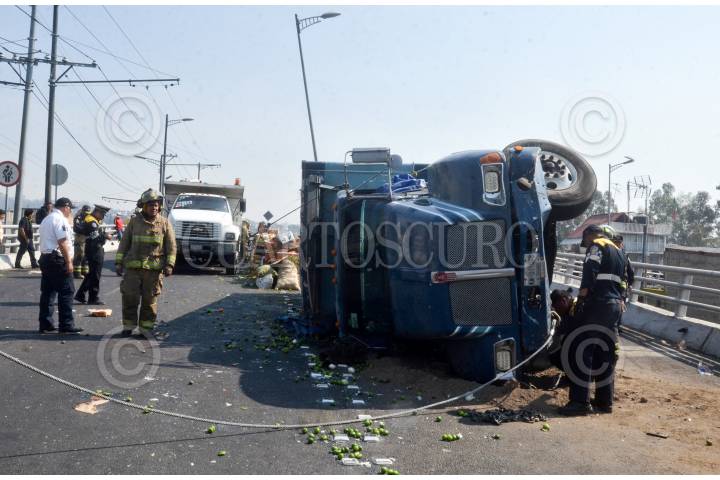 TLANEPANTLA, EDOMEX, 26FEBRERO2015.- Un tráiler se volcó en la avenida Adolfo López Mateos y Calzada de las Armas en la colonia San José Puente de Vigas. FOTO: ARMANDO MONROY /CUARTOSCURO.COM