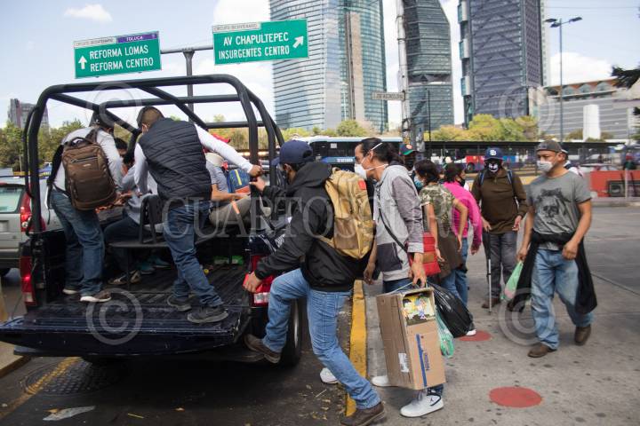 Usuarios abordan una camioneta de la policía en el metro Chapultepec, la cual los llevará a la estación Tacubaya. Ayer se suscitó un incendio en la subestación del Metro, ubicada en la calle de Delicias, lo que provocó la interrupción del servicio de las líneas 1,2,3,4,5 y 6.