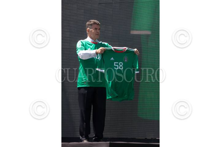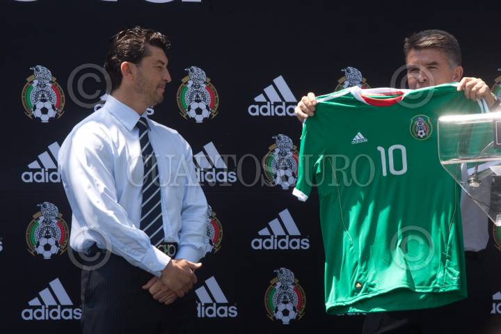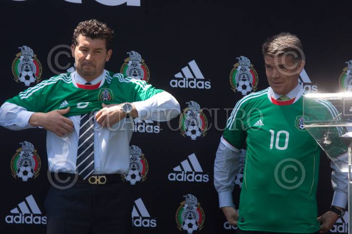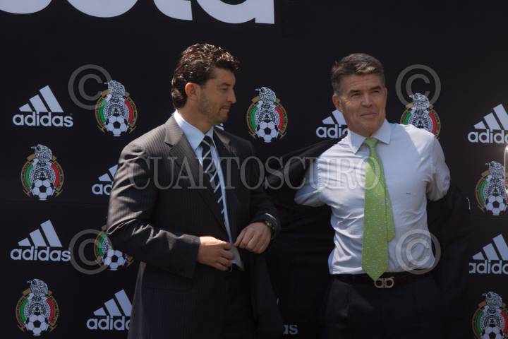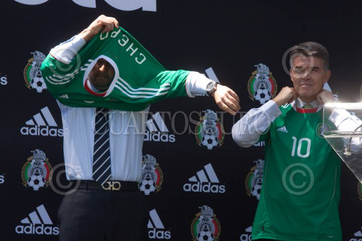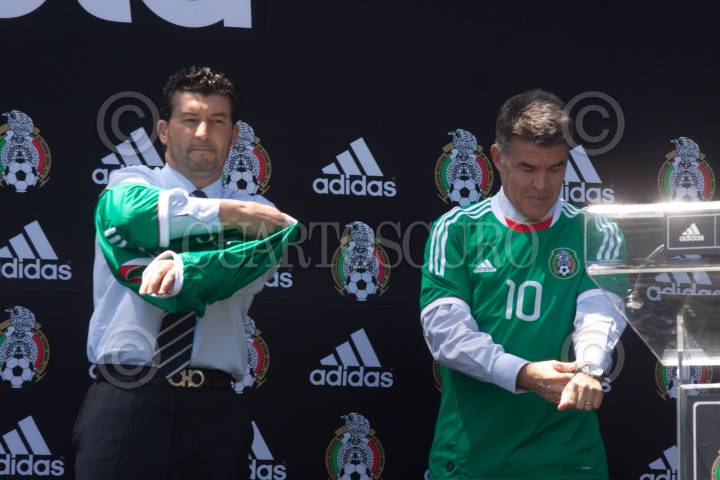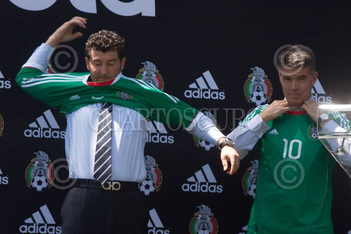 MÉXICO, D.F., 11MARZO2011.- José Manuel "Chepo" de la Torre Menchaca, director técnico de la selección mexicana de futbol; y Héctor González Iñárritu, director de Selecciones Nacionales de fútbol; presentaron la nueva playera que utilizarán los seleccionados nacionales de la marca ADIDAS. FOTO: IVAN STEPHENS/CUARTOSCURO.COM