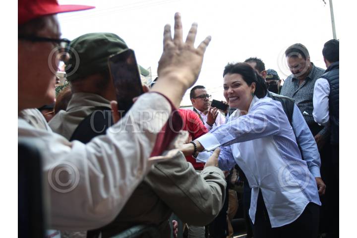 Rosalinda Bueso durante evento de su esposo Marcelo Ebrard