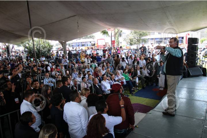 Marcelo Ebrard, realizó evento en Coyoacán donde convoco y asistieron decenas de personas.