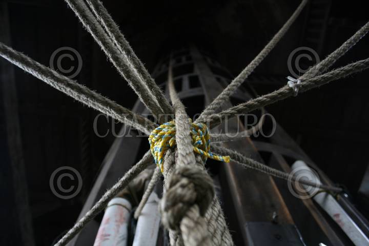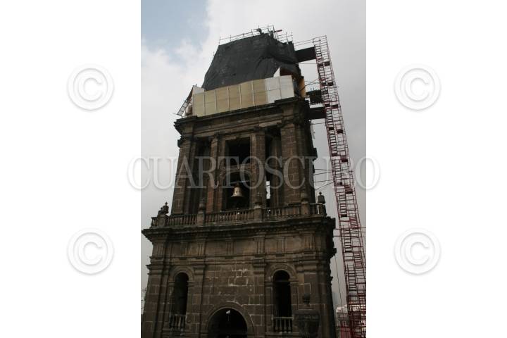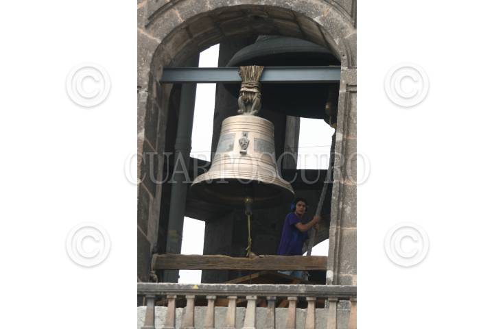 MÉXICO, D.F., 23OCTUBRE2009.- El campanario de la Catedral Metropolitana esta compuesto por 30 campanas aunque existe un espacio para 36 campanas, cada una de ellas lleva su nombre. El toque de las campanas sirve para convocar al pueblo a la asamblea litúrgica y para señalar momentos importantes, por tal razón existen diversos toques de repiques, como el llamado a misa, es tan fuerte es sonido que emiten las campanas que algunos trabajadores que se han encargado de hacerlas sonar han perdido el oído es por eso que para su protección utilizan unas orejeras. FOTO: SÁSHENKA GUTIÉRREZ/CUARTOSCURO.COM