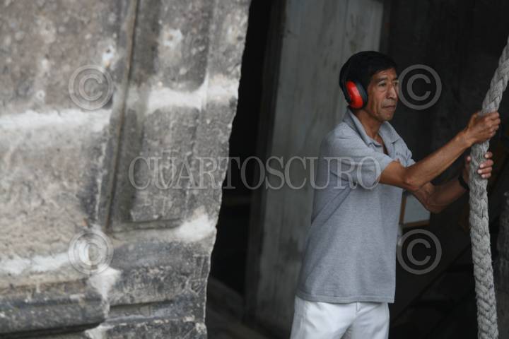 SAN CRISTÓBAL DE LAS CASAS, 27JUNIO2014.- Ricardo Francisco Urbina Ruiz lleva más de 30 años ininterrumpidos tocando la campana de la Catedral de San Cristóbal; acción que repite por lo menos tres veces por día. FOTO: ELIZABETH RUIZ /CUARTOSCURO.COM