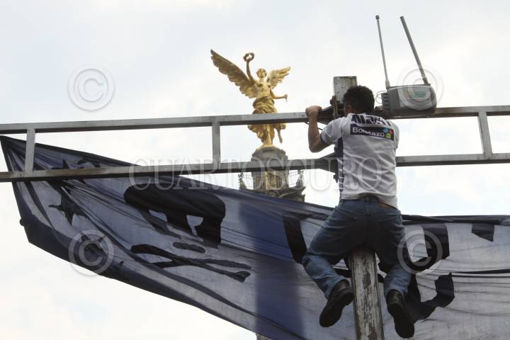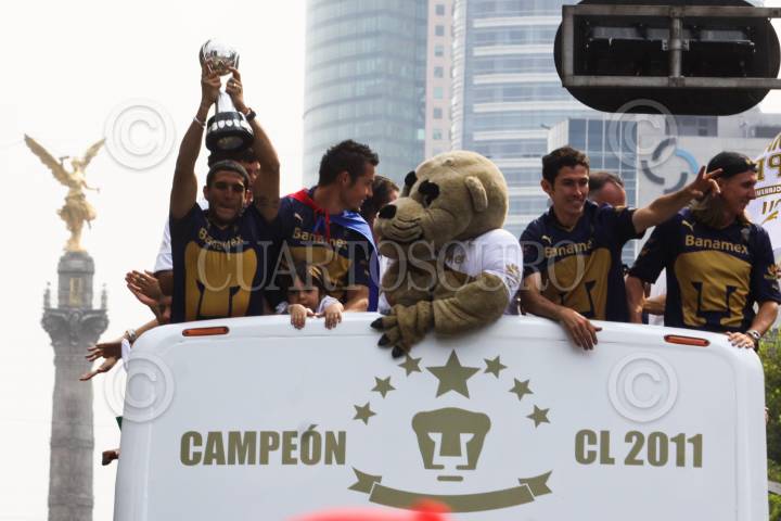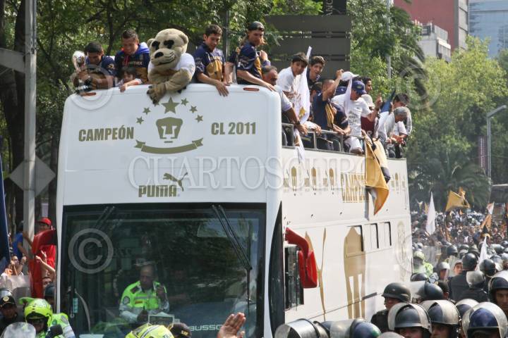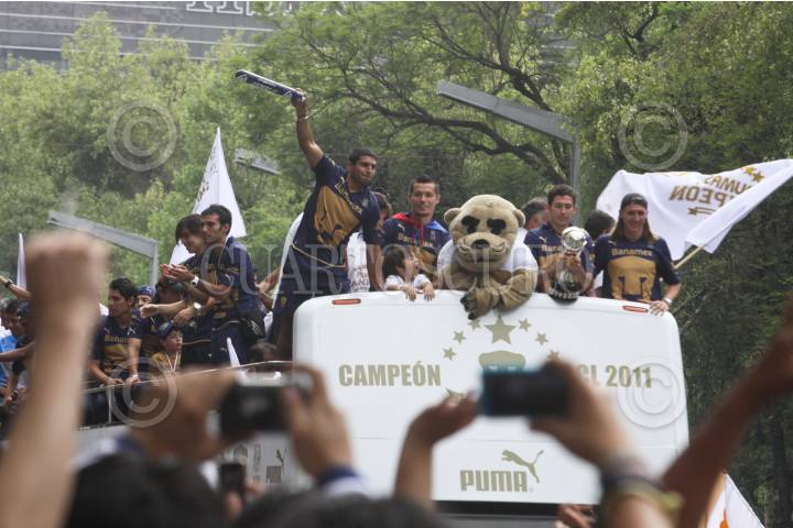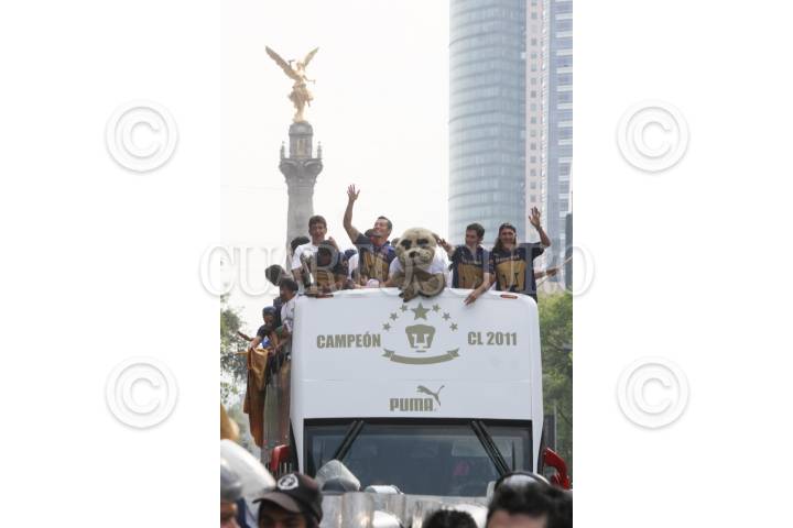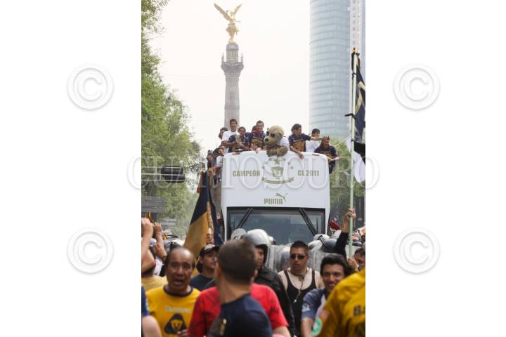 MÉXICO, D.F., 22MAY02011.- Miles de aficionados se concentraron en la avenida reforma para esperar al club PUMAS de la UNAM el cual recorrió la avenida en turibus para festejar el séptimo campeonato en el torneo mexicano de fútbol. FOTO: ENRIQUE ORDÓÑEZ/CUARTOSCURO.COM