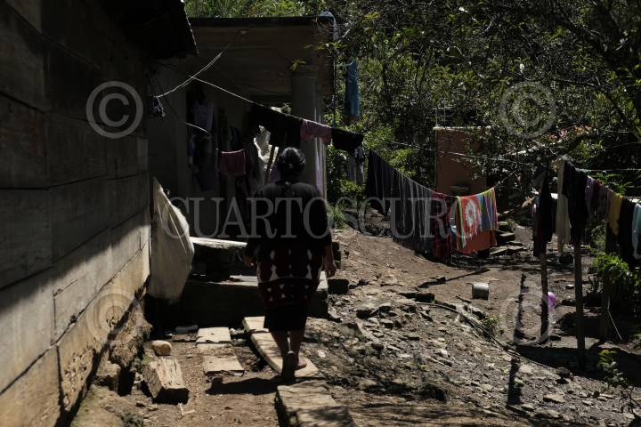 Mujer en situación de desplazamiento forzado va a su nueva casa en busca de documentos que prueban la violencia que se ejerció hace tres años cuando se vieron obligados a dejar sus hogares a causa de la violencia.