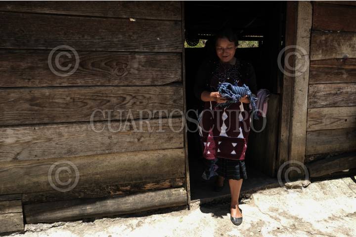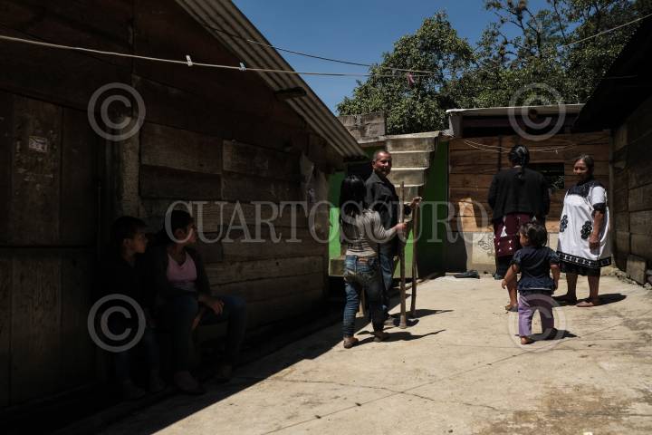 Familias originarias de Chalchihuitán en situación de desplazamiento forzado terminan las labores del día en el campo.
