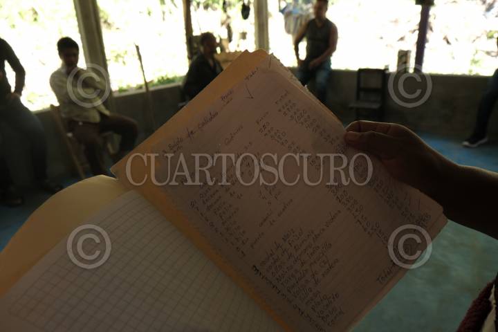 Uno de los integrantes de la familia en desplazamiento forzado muestra una lista de los que dejo atrás a causa de la violencia ejercida por grupos armados provenientes de Chenalhó.
