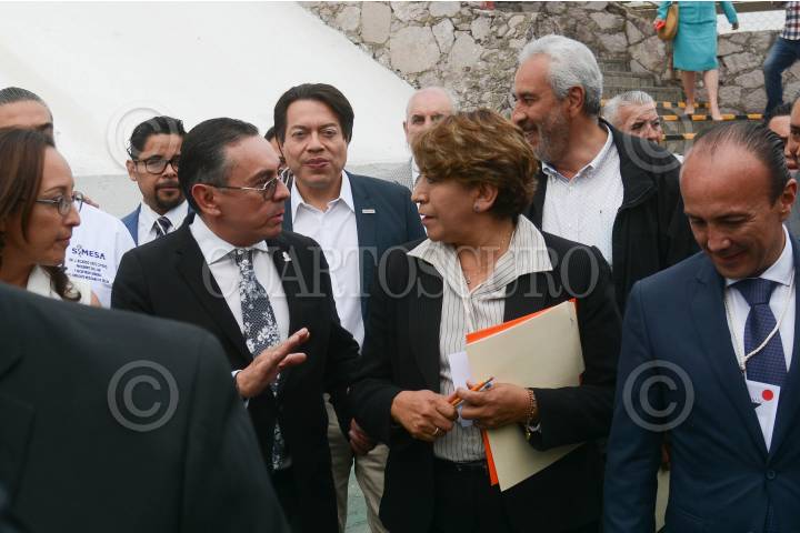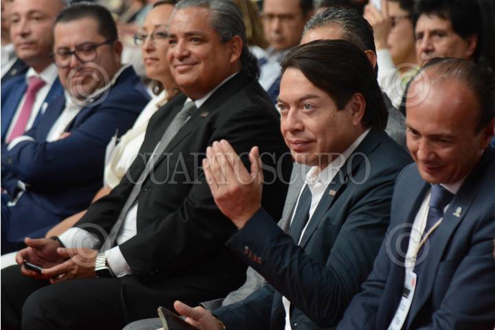 Mario Delgado, dirigente nacional de Morena, observa la participación de Delfina Gómez, candidata a la gubernatura del Estado de México, por la coalición Morena, PT y PVEM, durante el foro “Diálogo Ciudadano: Gobernadora 2023” en las instalaciones de la Universidad Del Valle de México (UVM) campus Lomas Verdes.