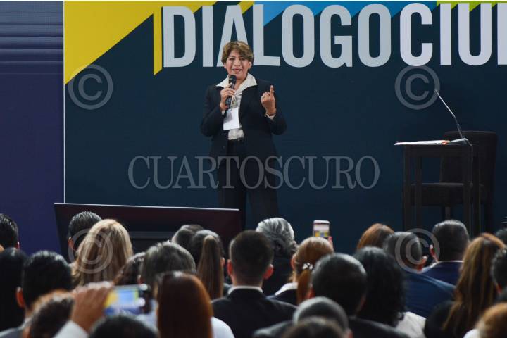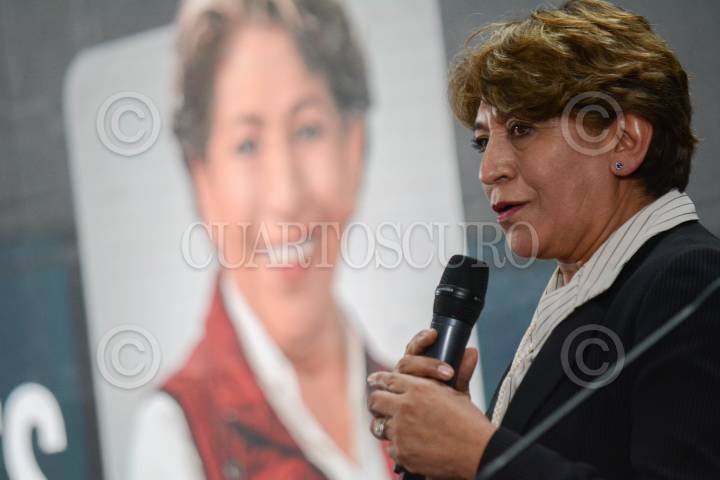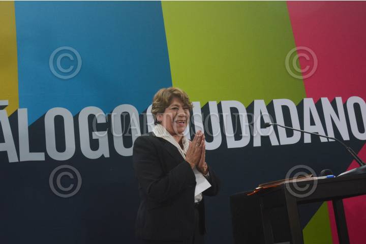 Delfina Gómez, candidata a la gubernatura del Estado de México, por la coalición Morena, PT y PVEM, durante su participación en el foro “Diálogo Ciudadano: Gobernadora 2023” en las instalaciones de la Universidad Del Valle de México (UVM) campus Lomas Verdes.