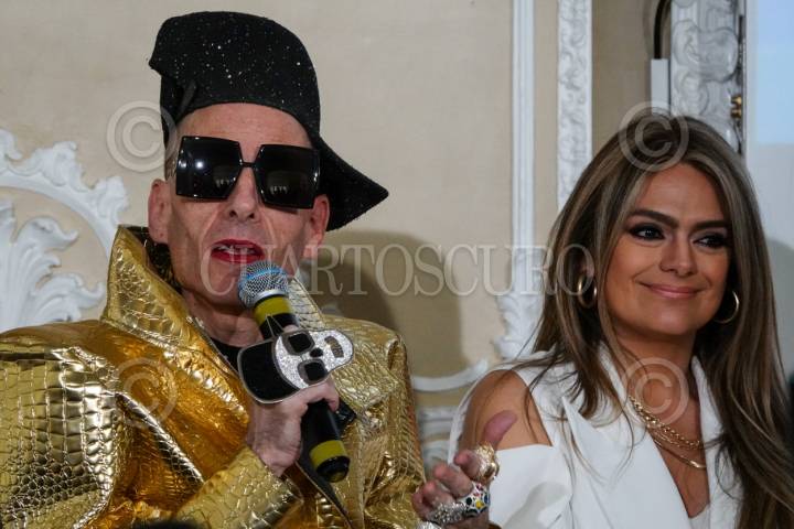 CIUDAD DE MÉXICO, 31ENERO2024.- El conductor de televisión y asesor Edy Smol “El Gurú de la Moda”, y la conductora Yazmín Jalil durante la conferencia de prensa para presentar el nuevo programa que encabezará llamado “Respondes o Resbalas” por el Canal Once. La programación constará de invitados de la política, arte y espectáculos que pondrán a prueba sus conocimientos y expondrán sus posturas sobre diversos temas de coyuntura.