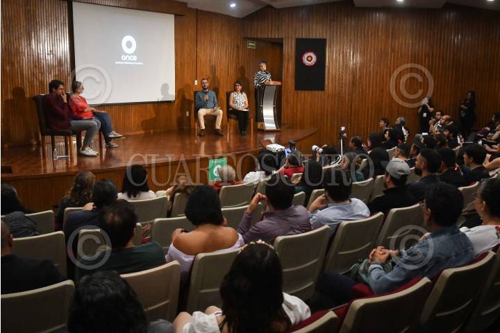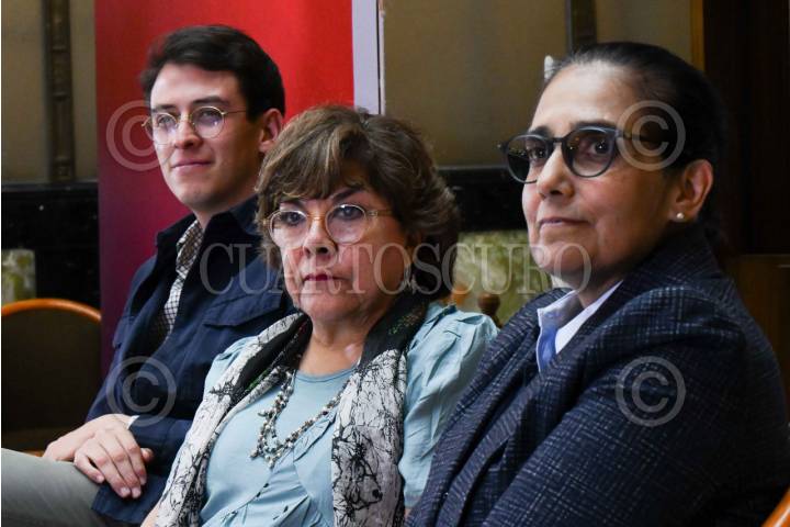 CIUDAD DE MÉXICO, 20SEPTIEMBRE2024.- Carlos Brito, director general de Canal Once; Mónica Unikel-Fasja, directora de la Sinagoga Histórica Justo Sierra; Jorge Pedro Uribe, cronista, y Ana María Galicia, titular de la Dirección de Divulgación - Producción Audiovisual del INAH, durante la presentación de "Ciudad Infinita" nueva serie de Canal Once, la cual a través de seis capítulos abordará un recorrido de los lugares más representativos de la capital del país. La serie se estrenará el próximo 24 de septiembre a las 20 horas. FOTO: MARIO JASSO/CUARTOSCURO.COM