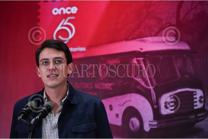 CIUDAD DE MÉXICO, 19MARZO2024.- Carlos Brito Lavalle, director general de Canal Once, durante su intervención en la ceremonia de cancelación de la estampilla postal en conmemoración del 64 aniversario de Canal Once. FOTO: MARIO JASSO/CUARTOSCURO.COM