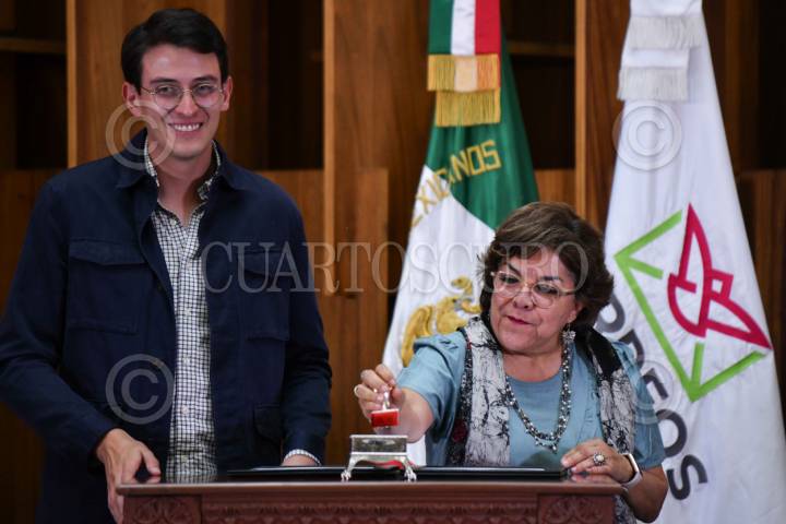 CIUDAD DE MÉXICO, 19MARZO2024.- Carlos Brito Lavalle, director general de Canal Once; Rocío Bárcena Molina, directora general del Servicio Postal Mexicano, encabezaron la cancelación de la estampilla postal en conmemoración del 64 aniversario de Canal Once. FOTO: MARIO JASSO/CUARTOSCURO.COM