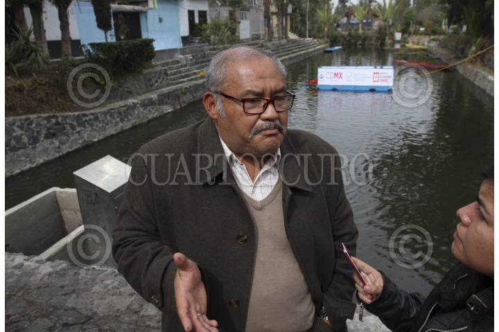 MÉXICO, D.F., 19ENERO2016.- El canal Atenco, localizado en el Pueblo de San Gregorio Atlapulco, fue inaugurado después de la etapa de rehabilitación en donde se habilitó un sistema de para la conducción de agua proveniente de la planta de tratamiento de San Pedro Actopan. El proyecto estuvo a cargo de la Secretar´ia de Ciencia, Tecnologíia e Innovación (Seciti) del gobierno del Distrito Federal. El objetivo de este proyecto fue devolverle la vida al canal que ya se encontraba desecado y con agua estancada con alto contenido de bacterias fecales. Se pretende que con la inclusión de este ducto de agua tratada al menos 250 productores de hortalizas y flores sean beneficiados. En la imagen, Avelino Méndez Rangel, delegado de Xochimilco por Morena. FOTO: MARÍA JOSÉ MARTÍNEZ /CUARTOSCURO.COM