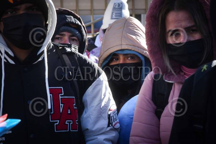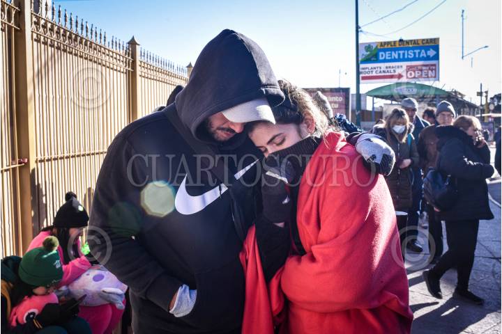 CIUDAD JUÁREZ, CHIHUAHUA, 20ENERO2025.- Entristecidos y desesperanzados por la cancelación de las citas CBP One (permiso humanitario que les permita el ingreso legal a Estados Unidos), anunciada durante la toma de posesión de Donald Trump como presidente de los Estados Unidos, migrantes que habían obtenido su cita para el día de hoy y esperaban en fila dieron muestras de lamento, en el Puente Internacional Paso del Norte. FOTO: PEDRO ANZA /CUARTOSCURO.COM