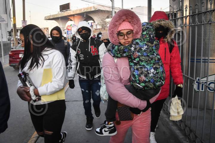 CIUDAD JUÁREZ, CHIHUAHUA, 21ENERO2025.- Personas migrantes de distintas nacionalidades que tenían cita para el permiso humanitario mediante CBP One acudieron al Puente Internacional Paso del Norte pese a la cancelación anunciada ayer por Donald Trump, presidente de los Estados Unidos. Las personas fueron atendidas por personal del Fideicomiso de Puentes Fronterizos de Chihuahua quienes le brindaron información y atención, mientras en el acceso principal se mantuvo presencia de la Guardia Nacional y del Instituto Nacional de Migración (INM). FOTO: MARIO JASSO/CUARTOSCURO.COM